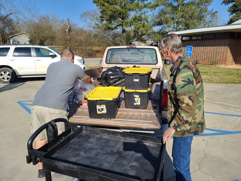 Frazier Edmonson and Jerry Bice load up food to be delivered across the street to Hanceville schools.