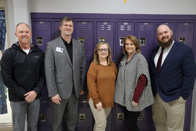 (George Redding/Fairview High Assistant Principal, Dr. Shane Barnette/Cullman County School Superintendent, Sherri Swindall/AmFirst Staff of the Month, Beverly Cochran/AmFirst Membership Development Manager, Daniel Boggan/AmFirst Cullman Branch Manager)